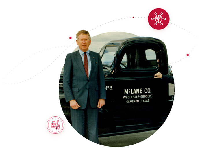 McLane Company established in Cameron, Texas. Headquarters later moved to Temple, Texas.